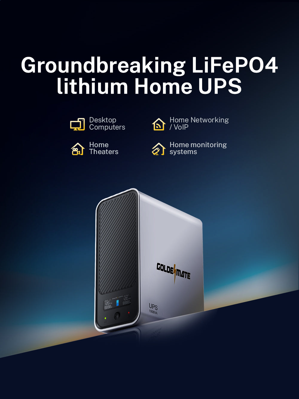 GoldenMate Back-UPS 8 Outlets 1500VA/1000W LiFePO4 Battery Backup and Surge Protector