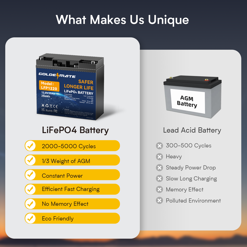 Goldenmate energy has implemented LiFePO₄ batteries because of all these advantages and the remarkable results.