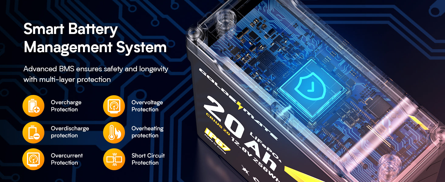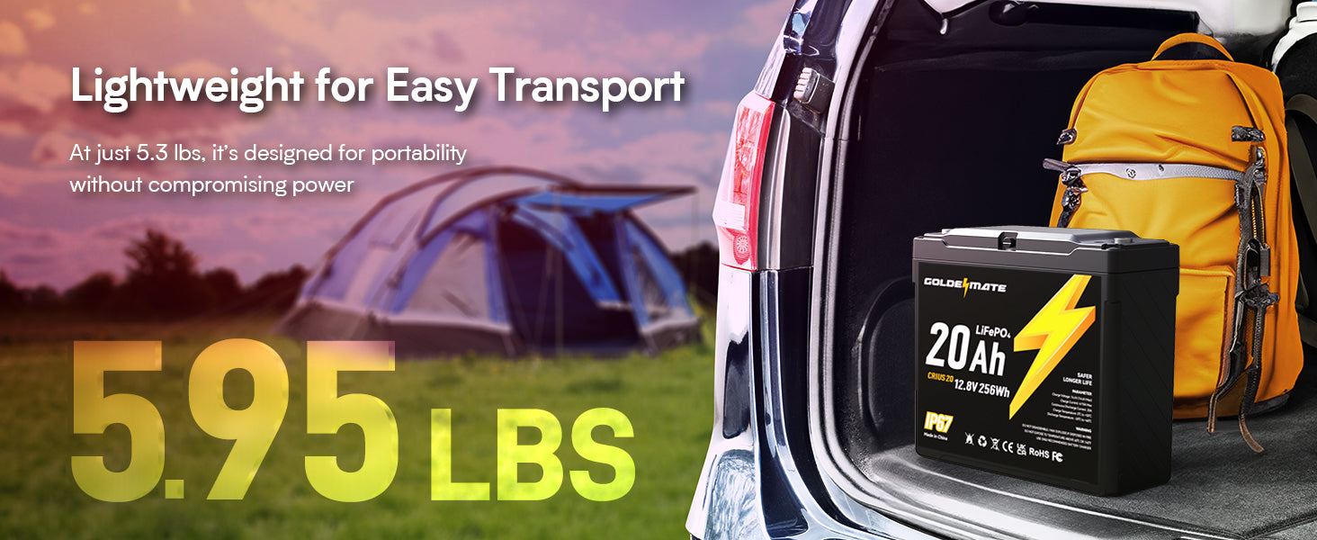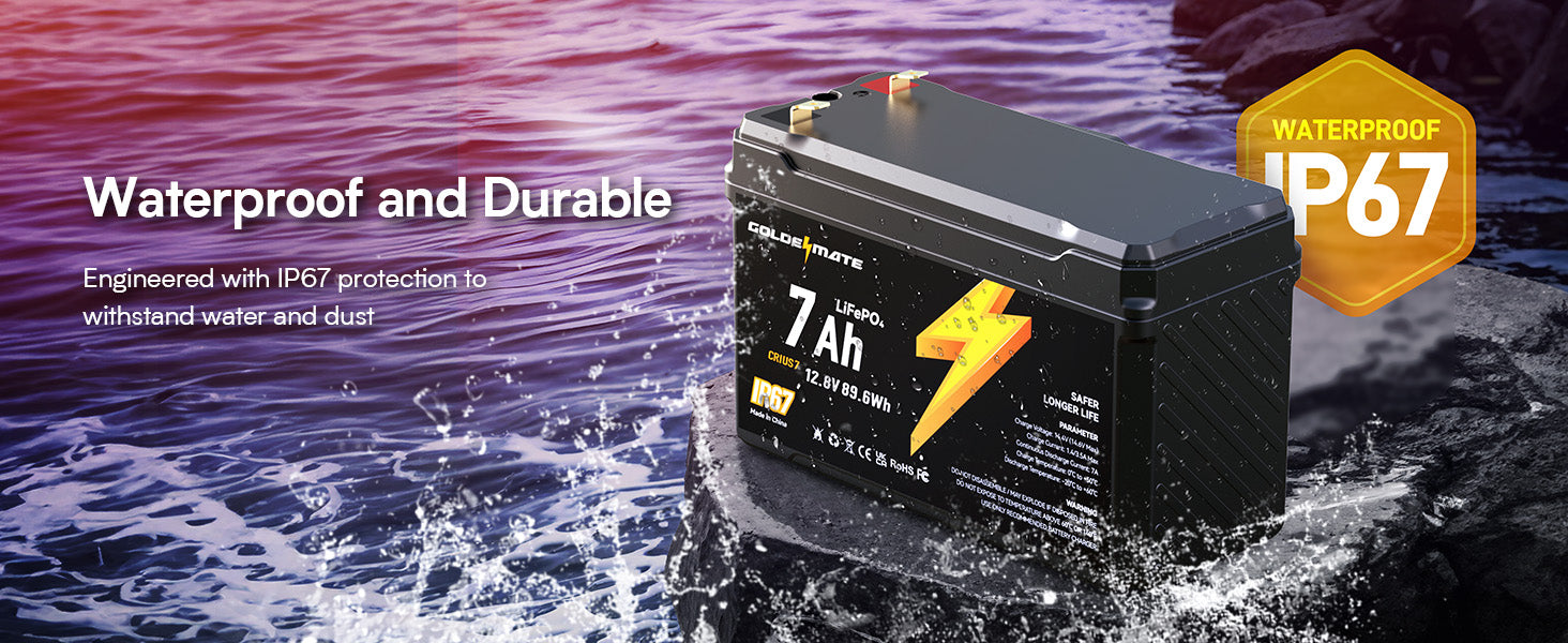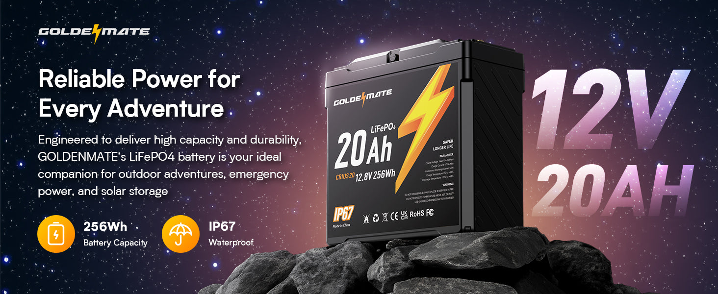 GoldenMate 12V 20Ah IP67 Waterproof LiFePO4 Lithium Battery