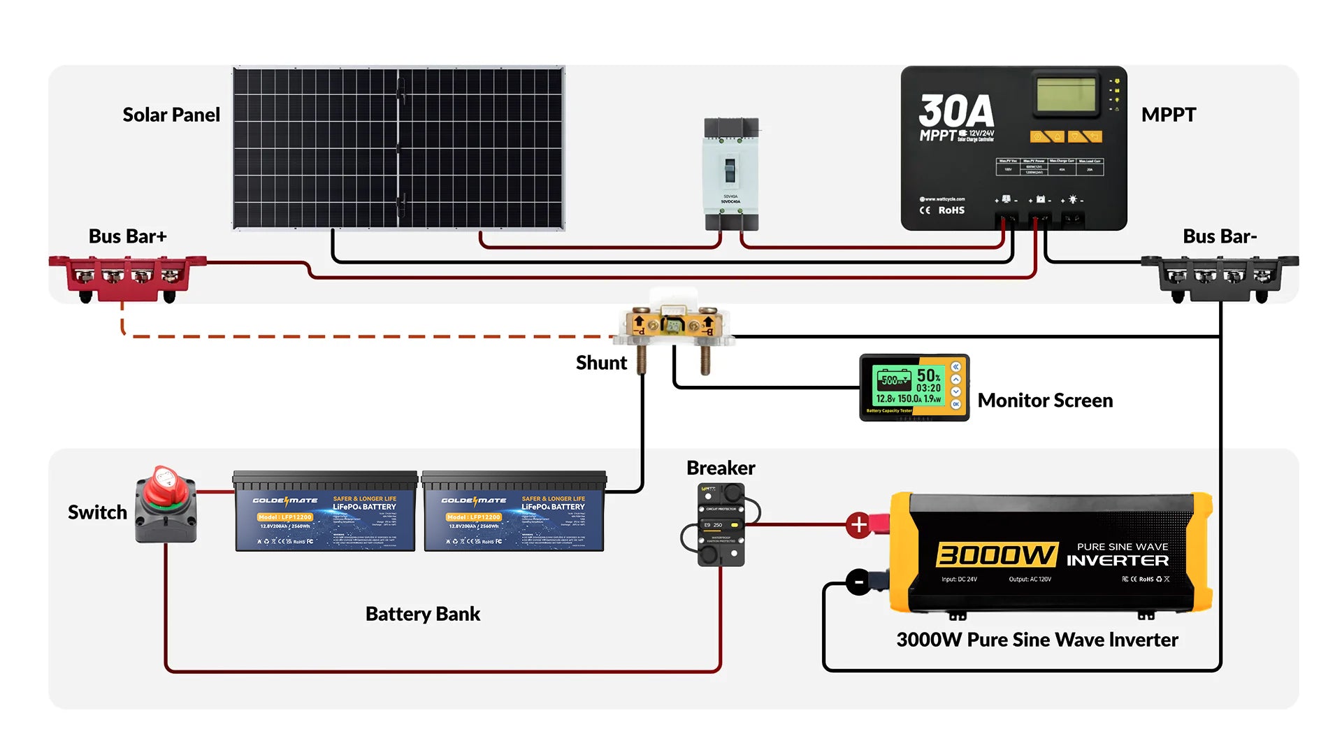 One of the key advantages of Goldenmateโs lithium batteries for off grid solar is their built-in Battery Management System (BMS), which helps prevent overcharging. However, itโs still important to set proper parameters on your charge controller to avoid pushing the battery beyond its designed voltage limits. Overcharging can reduce battery lifespan, so monitoring charge levels is critical.