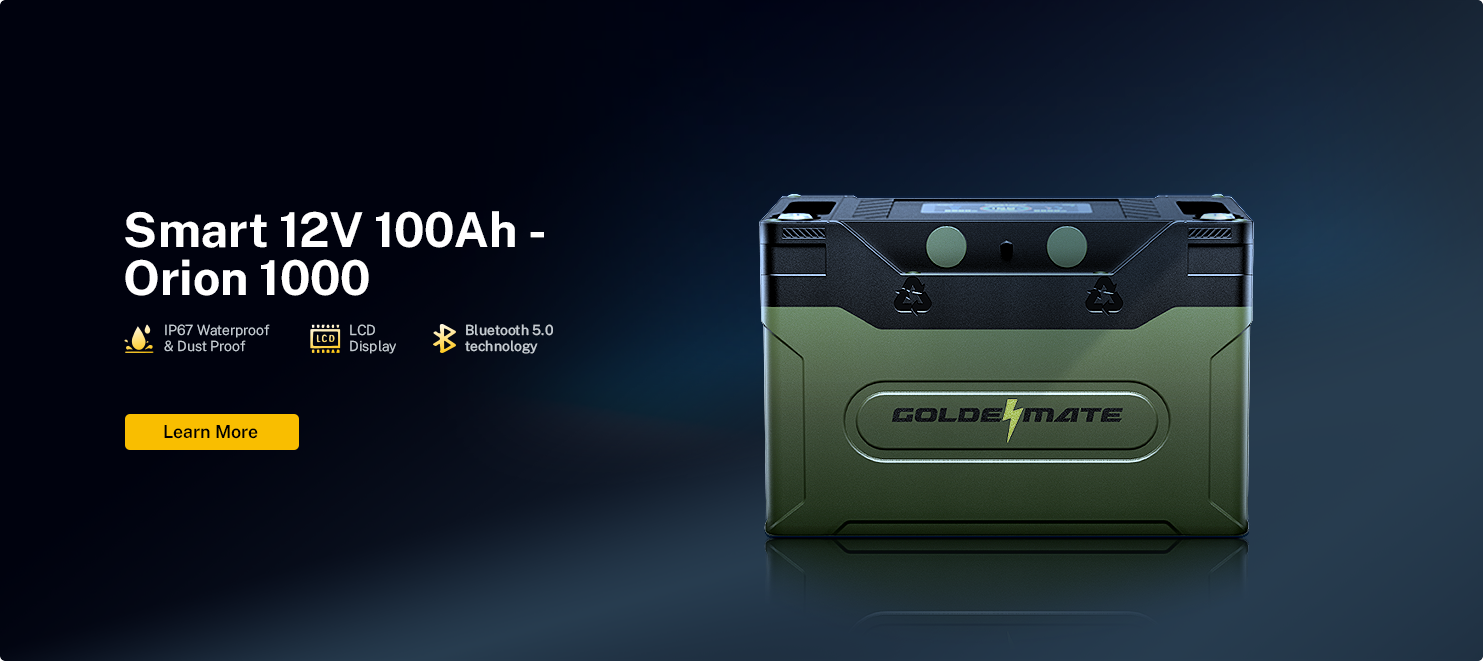 GOLDENMATE 100Ah: Versatile for home, outdoors, and solar setups. Packed with features for reliability, a top choice for diverse applications.