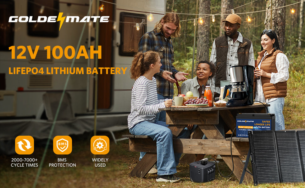 GoldenMate 12V 100Ah Group 31 LiFePO4 Lithium Battery
