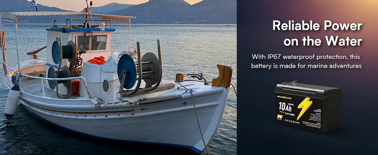 GoldenMate 12V 10Ah IP67 Waterproof LiFePO4 Lithium Battery