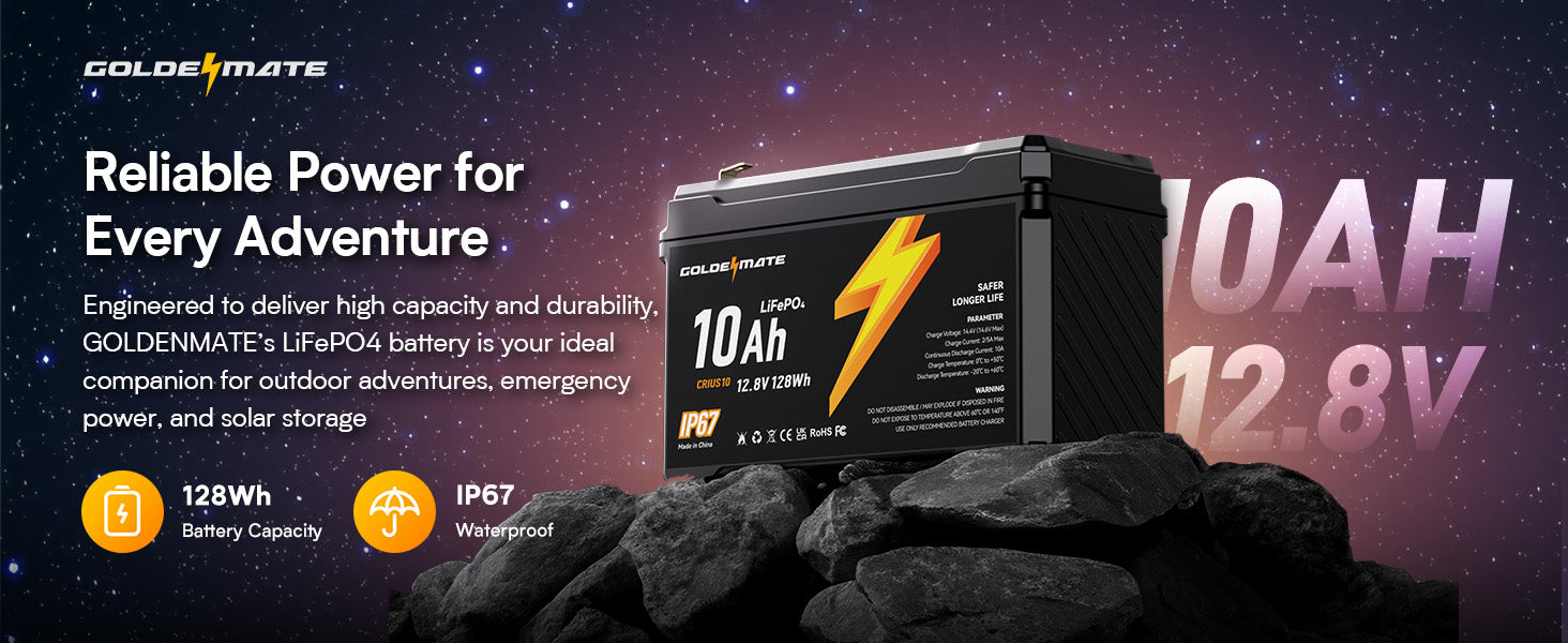 Goldenmate's 12V 100Ah LiFePO4 lithium battery is an affordable choice for off-grid use or RV upgrades, offering reliability and efficiency.
