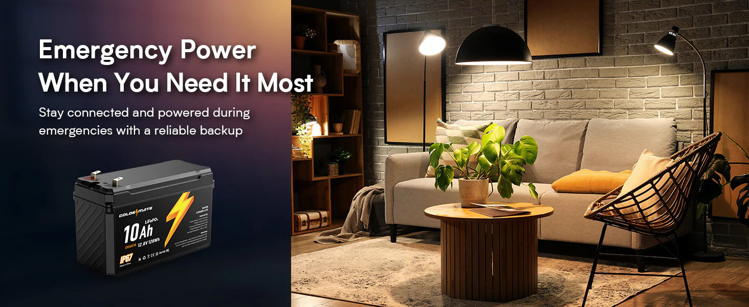 - Safe & Eco-Friendly: GoldenMate 12V 10Ah LiFePO4 battery provides the highest-level safety based on CE, ROHS, and FCC certifications. The battery won’t burn or explode because of the stable LiFePO4 cell structure. And it doesn’t contain any heavy metals or rare metals and is more environmentally friendly.