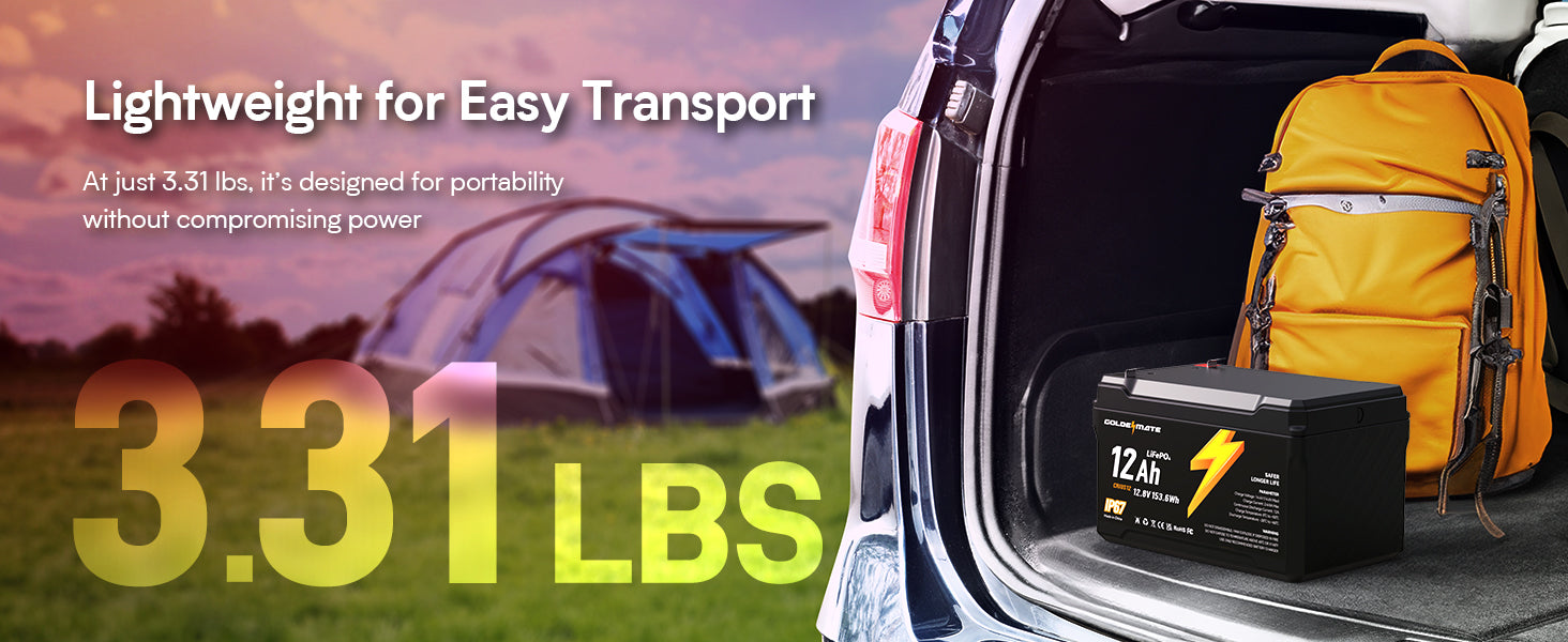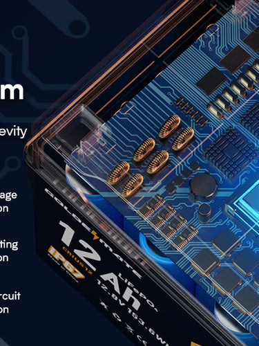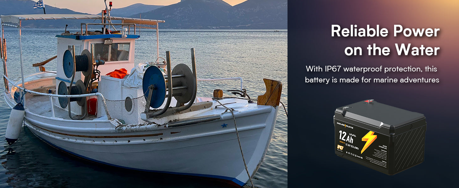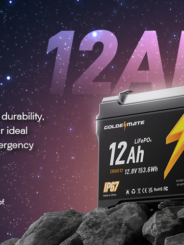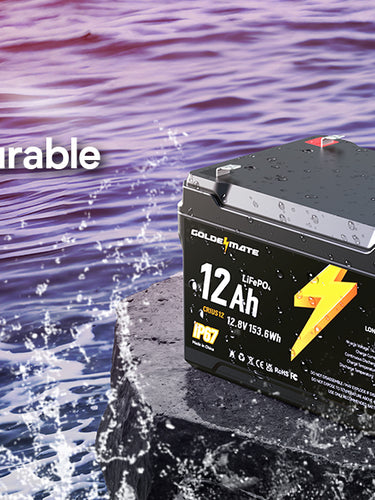 GoldenMate 12V 12Ah IP67 Waterproof LiFePO4 Lithium Battery