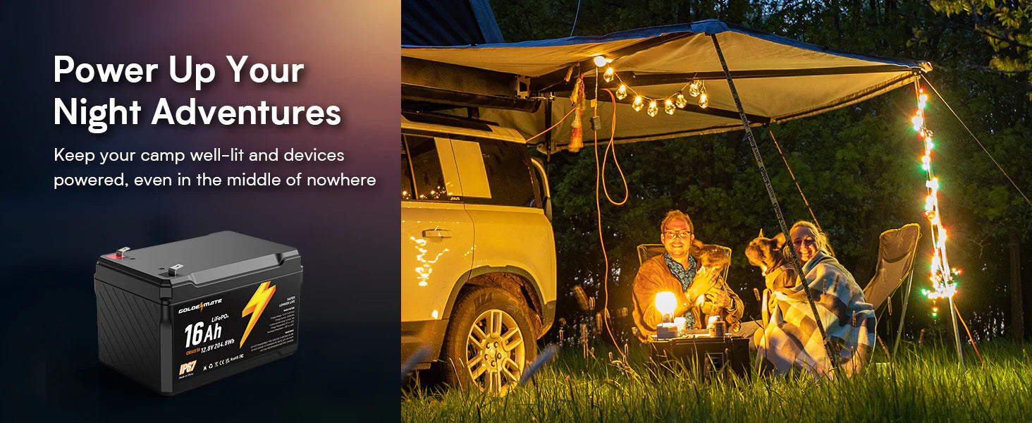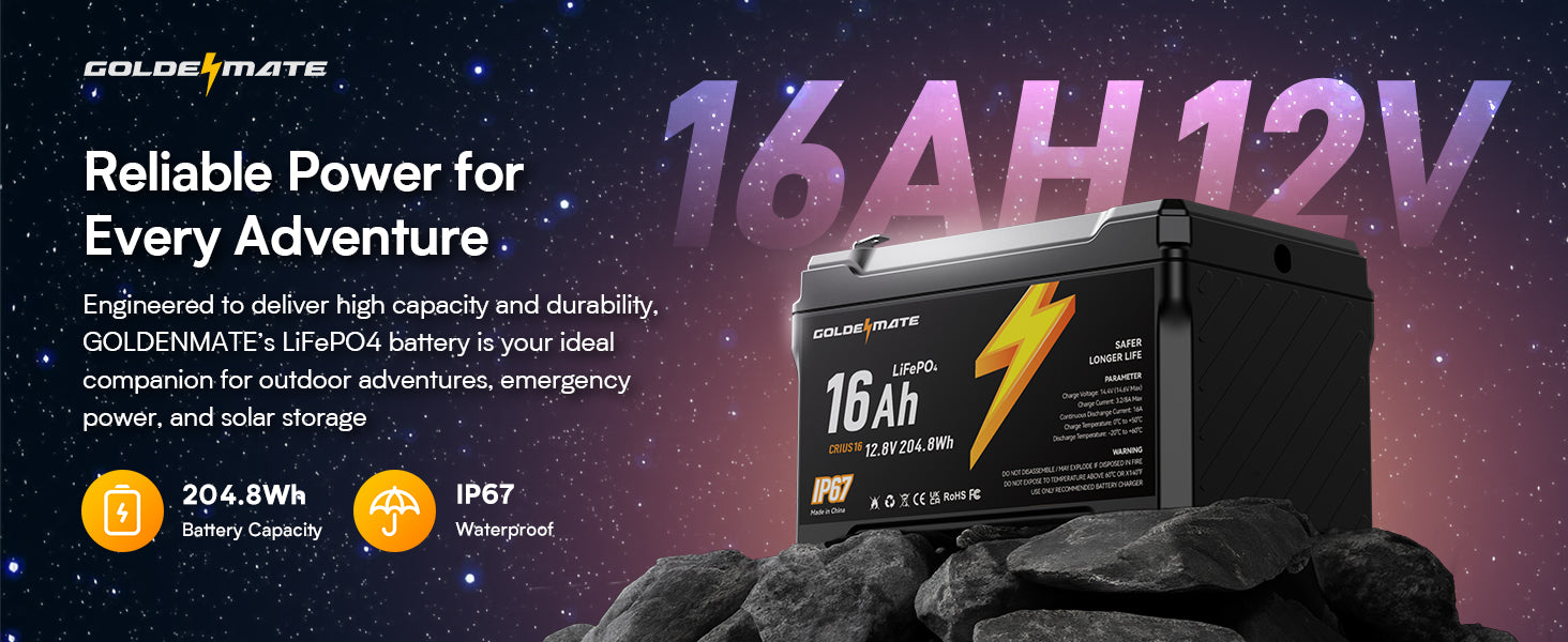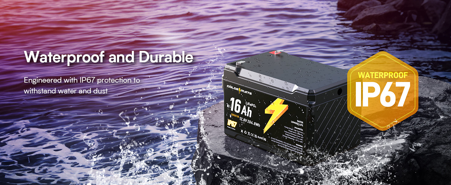 GoldenMate 12V 16Ah IP67 Waterproof LiFePO4 Lithium Battery