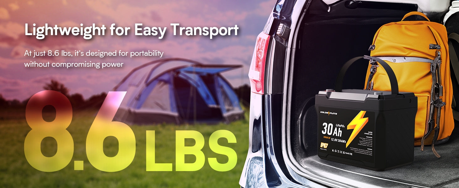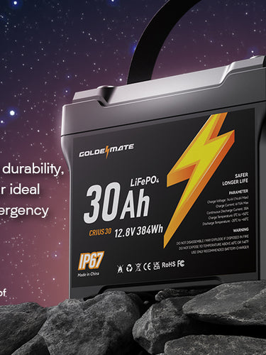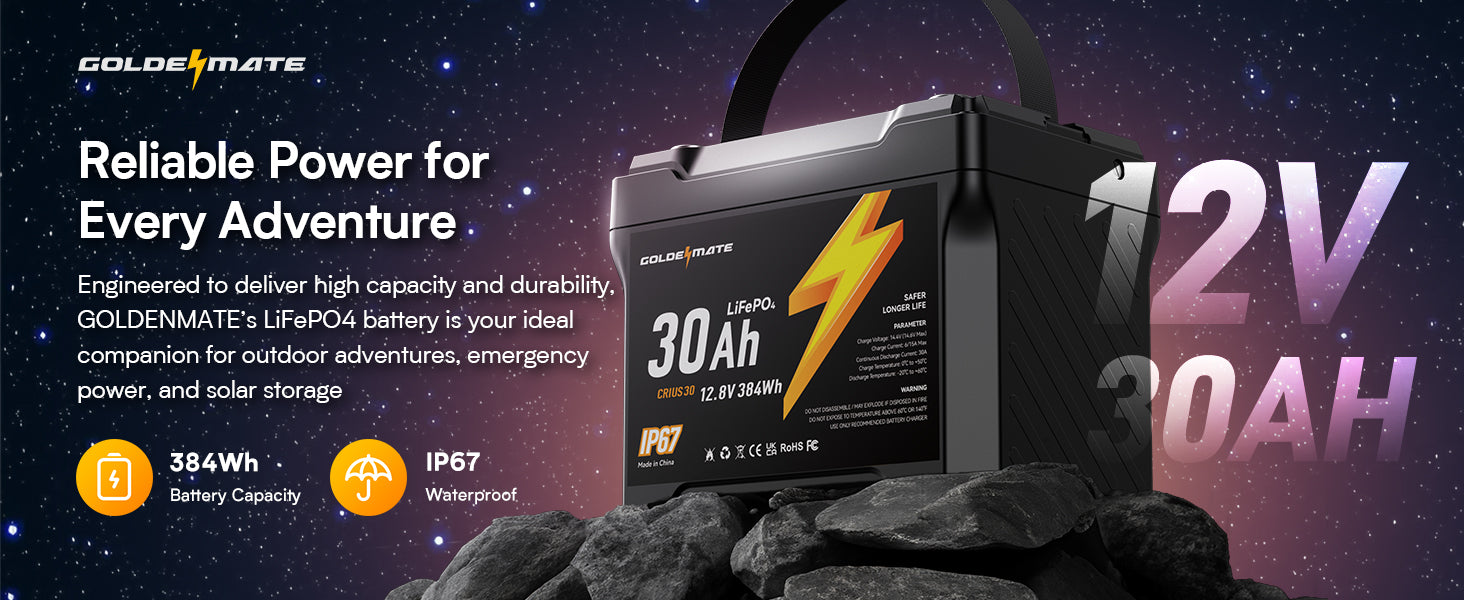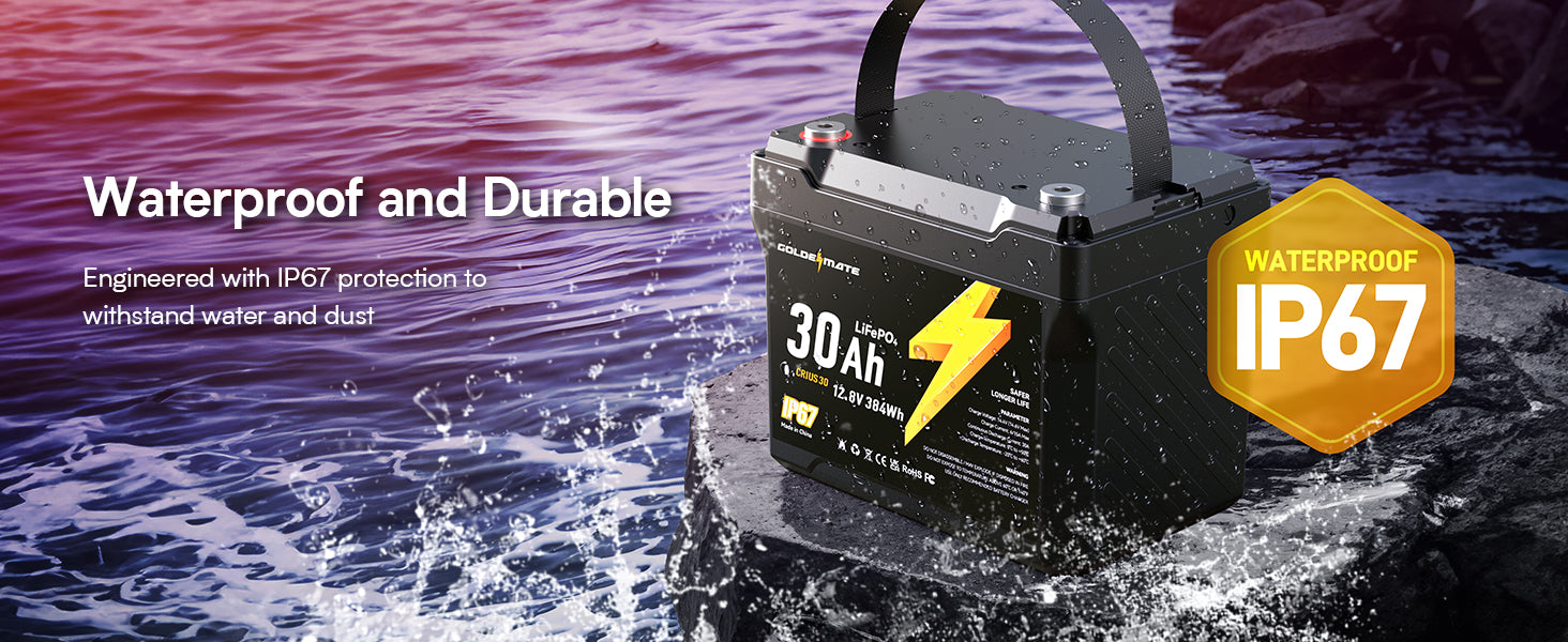 GoldenMate 12V 30Ah IP67 Waterproof LiFePO4 Lithium Battery