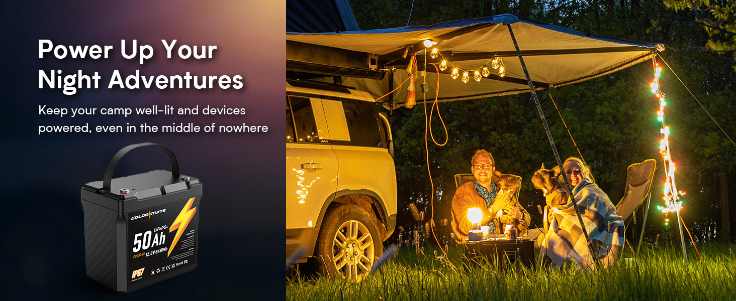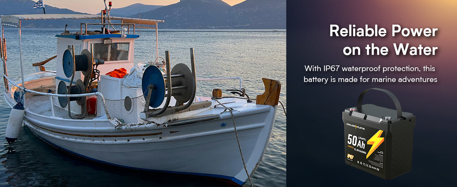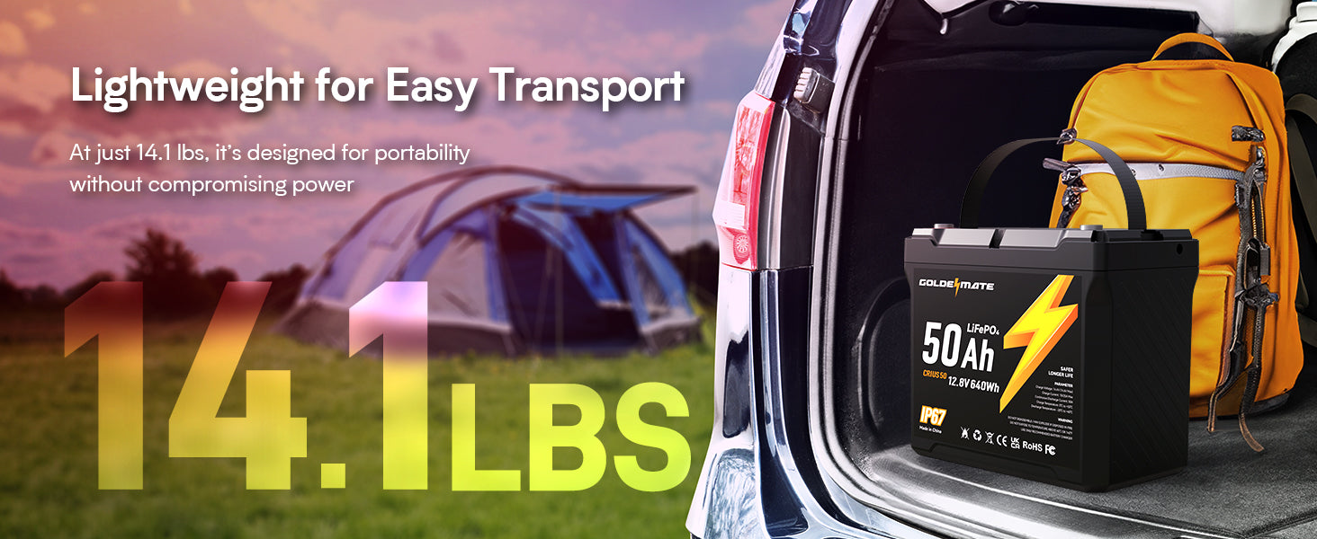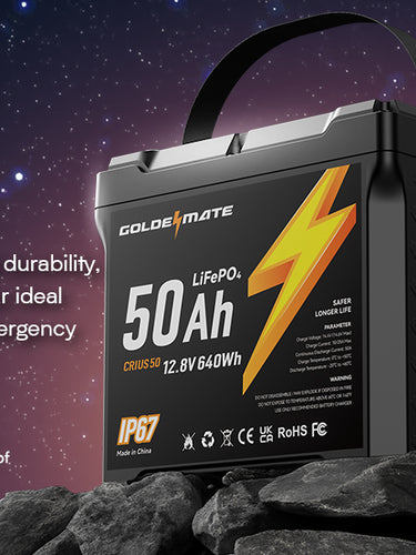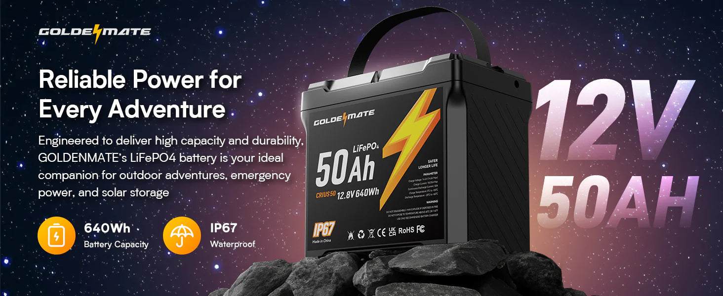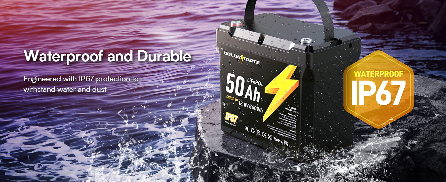 GoldenMate 12V 50Ah IP67 Waterproof LiFePO4 Lithium Battery