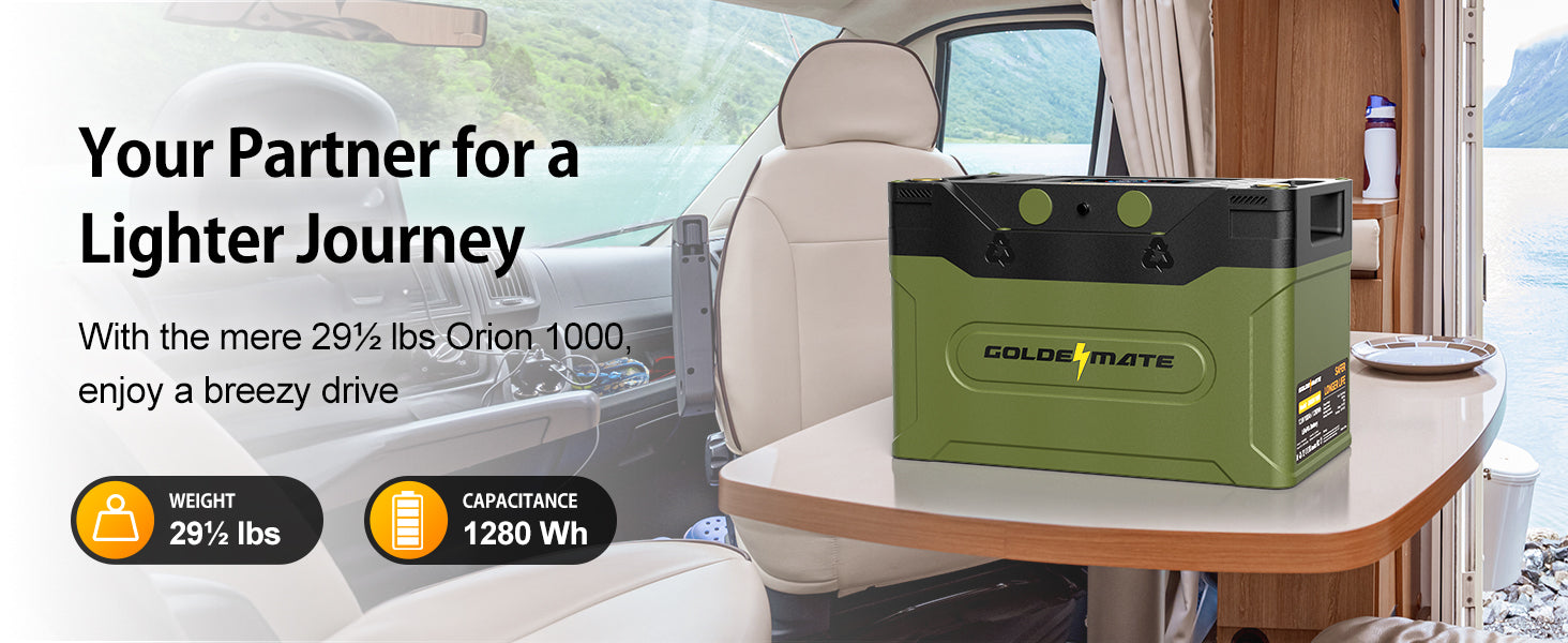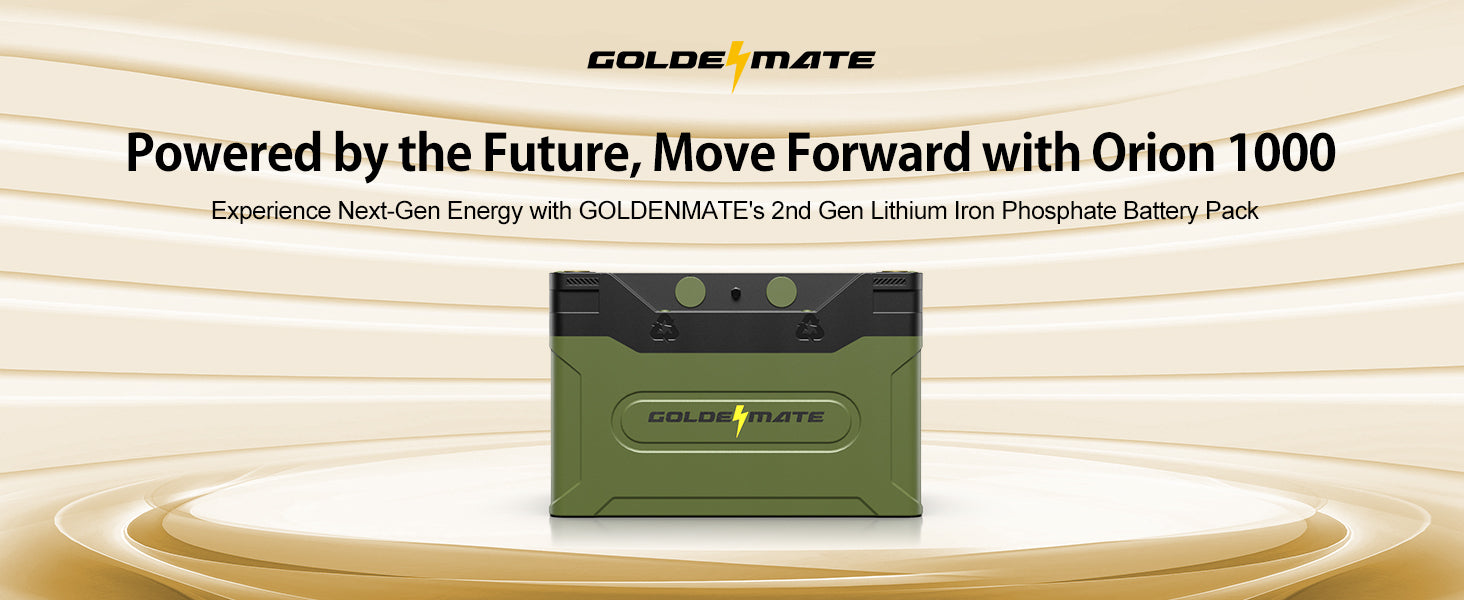 GoldenMate Orion1000 12V 100Ah IP67 Waterproof LiFePO4 Battery with LCD Display & APP Monitoring
