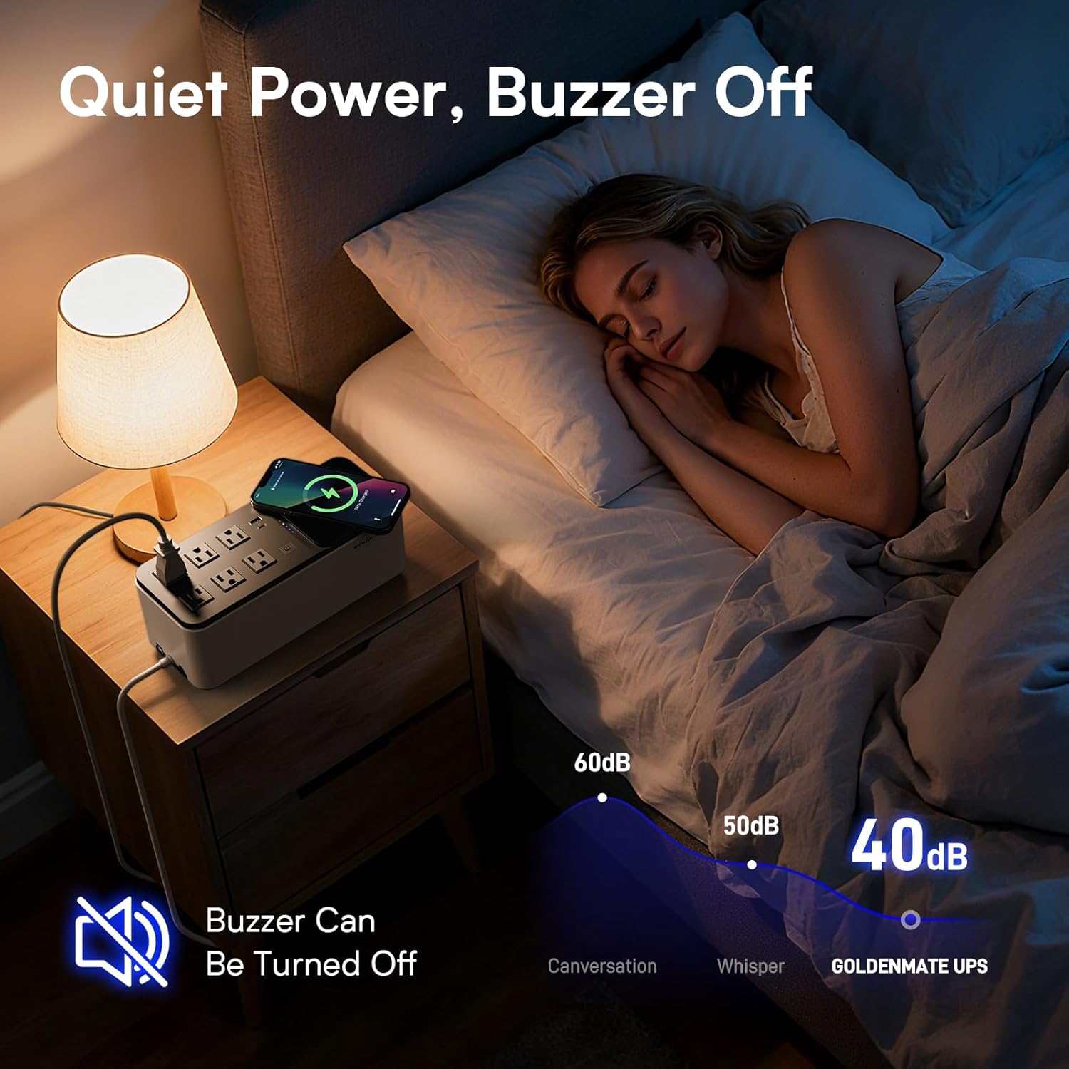 GoldenMate 6 Outlets 600VA/360W Lithium UPS Battery Backup and Surge Protector