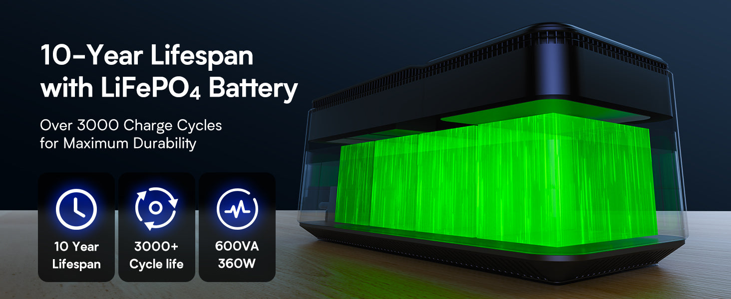 - LiFePO4 Battery: Featuring a Lithium Iron Phosphate (LiFePO4) Battery Pack, this UPS offers a longer life span with over 5000+ cycles, eliminating the risks of explosion and fire hazards, making it excellent for medical equipment backup.