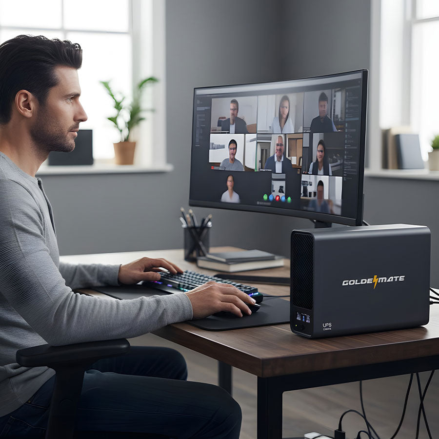 GoldenMate UPS ensures your home office stays connected through critical power dips. Never drop an important video call or lose a crucial document due to an unexpected outage. Our clean power output guarantees business continuity and protects your high-value professional gear.